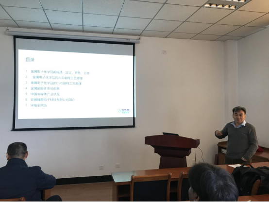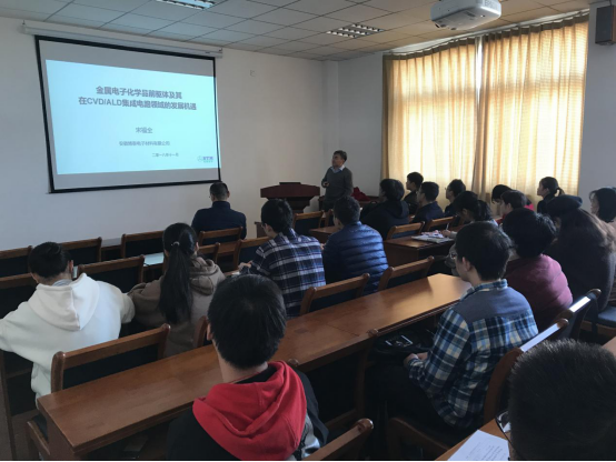 11月22日上午,安徽博泰电子材料有限公司总经理宋福全博士来时时彩 作题为《金属电子化学品前驱体及其在CVD/ALD集成电路领域的发展机遇》的学术报告。