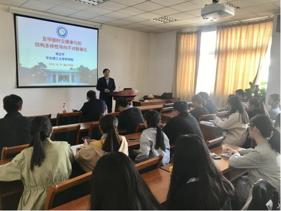 10月19日上午,在梁林校区1号楼506学术报告厅,热烈欢迎华东理工大学药时时彩 副院长、教育部新世纪优秀人才、上海浦江人才、博士生导师邓卫平教授来时时彩 作题为《亚甲胺叶立德参与的结构多样性导向不对称催化》的学术报告。