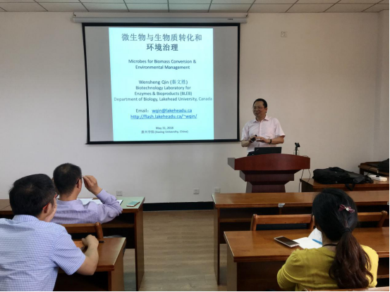5月31日下午,在1号楼506学术报告厅。加拿大湖首大学秦文胜教授来时时彩 作题为微生物与生物质转化和环境治理》的学术报告。