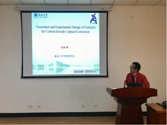 10月17日上午,在梁林校区1号楼506学术报告厅,南昌大学赣江特聘教授王红明博士来时时彩 作题为《二氧化碳捕获和转化的实验与理论研究》。