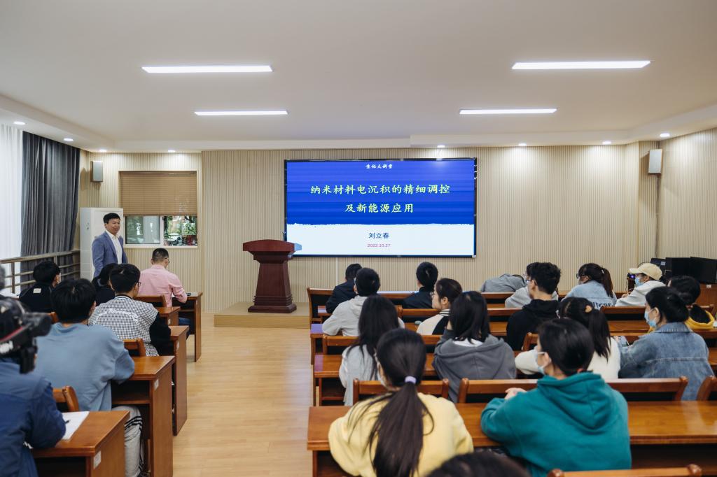 本次大讲堂名家讲坛由刘立春教授主讲,“青年论道”分别由曾祥华副教授和林丙永博士主讲。刘立春教授主讲题目为《纳米材料电沉积的精细调控及新能源应用》,报告介绍了利用电沉积法精细调控制备纳米电极材料,及其在新能源领域(电催化、超级电容器等)的应用研究。曾祥华副教授主讲题目为《自由基介导炔烃的双官能化》,介绍了砜自由基和碳自由基介导末端炔烃的双官能化反应,及其反应应用和机理研究。林丙永博士作题为《贵金属纳米复合SERS芯片的构建及其应用研究》的报告,介绍了利用多种简单快速的方法,将功能性材料与贵金属纳米材料相结合,设计并构建多种具备优异SERS性能的SERS芯片,将其应用于食品检测、环境监测、临床诊断等多个领域的现场快速检测方面的研究工作。