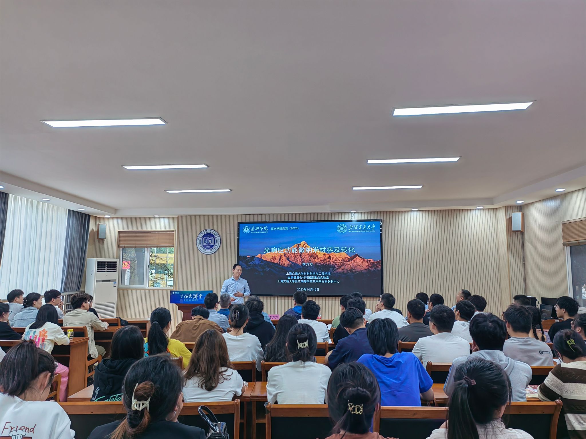 1019日下午,时时彩 举办“生化大讲堂”第二十四期学术交流会,本次大讲堂特邀请上海交通大学材料科学与工程时时彩 首席研究员、博士生导师李万万作题为“光响应功能微纳米诊疗材料及转化”的学术报告。会议由时时彩 郭隆华教授主持,全院及中澳先进材料与制造研究院师生70余人到场聆听。