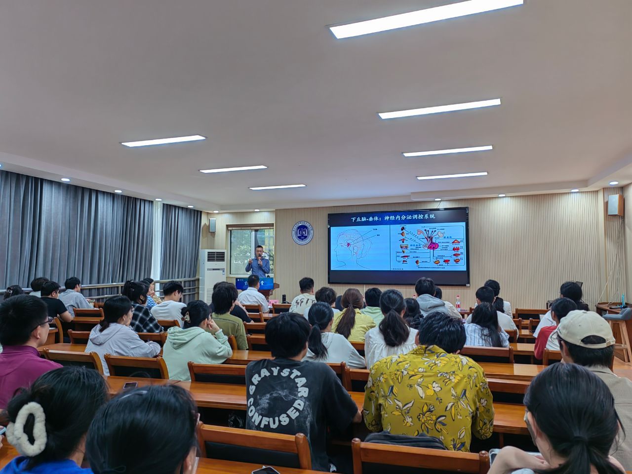 张超教授首先阐释了黑皮质素受体相关神经内分泌通路在肥胖、厌食症等病症中的生理调控机制。随后重点针对黑皮质素第四受体(MC4R)详细介绍了其课题组开展的多种药物研发工作。报告最后,张超教授就多组学、新技术驱动的神经内分泌肿瘤的精准个体化检测与治疗策略进行了介绍和展望。在互动交流环节,与会教师踊跃提问,张超教授耐心地解答了老师们提出的问题,并就相关问题进行了深入的交流讨论,现场气氛热烈。
