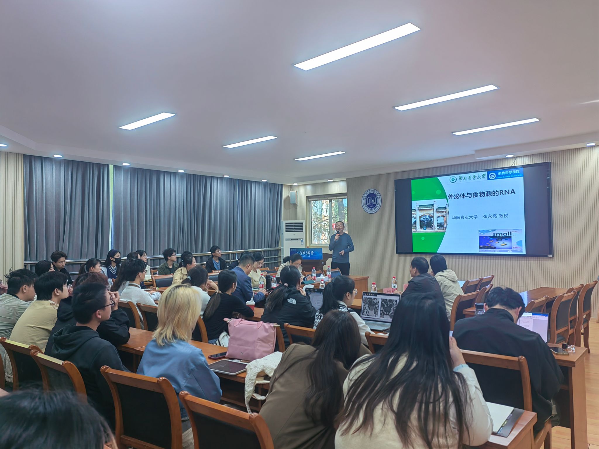 师生作题为“外泌体与食物源的RNA”的学术报告。图书馆副馆长张瑾教授主持会议,时时彩