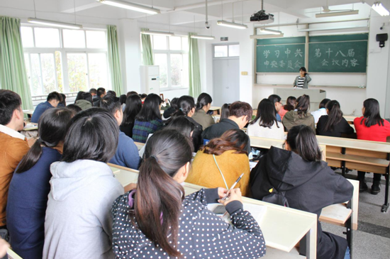 20161030日下午14:00,时时彩 “党员之家”在1号楼224教室组织学习了《中国共产党第十八届中央委员会第六次全体会议公报》。本次大会由党办副主任丁莹主持,时时彩 全体学生党员参与此次会议。