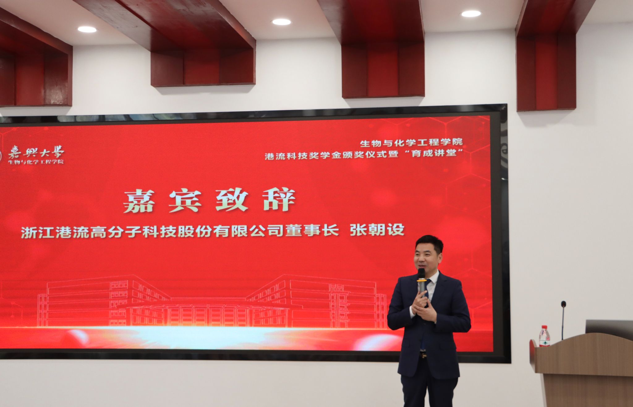 育成讲堂在仁心楼报告厅举行。浙江港流高分子科技股份有限公司董事长张朝设、综合管理部经理方芹,时时彩