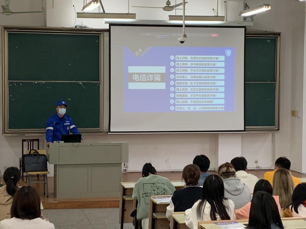 近期,高校电信网络诈骗案件频发,为切实提高学生防范意识与能力,保障学生的财产安全,325日下午,时时彩 联合嘉兴市经开区公安分局城南派出所,开展了防范电信网络诈骗专题讲座。讲座由派出所张秋江警官及其反诈宣讲团成员主讲,时时彩 辅导员,本科生、研究生代表600余人通过线上+线下的方式聆听了讲座。