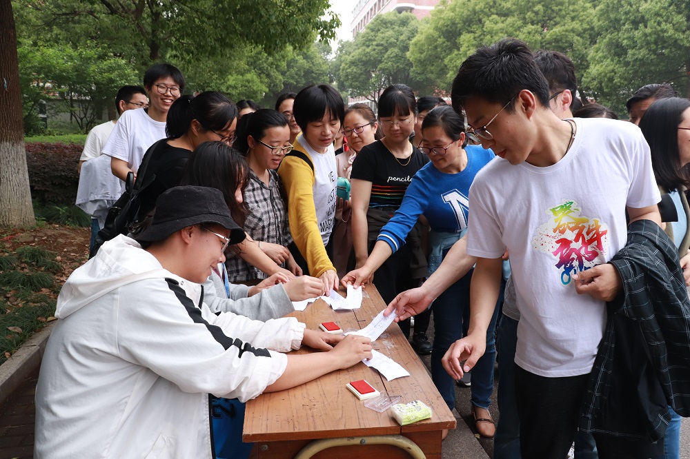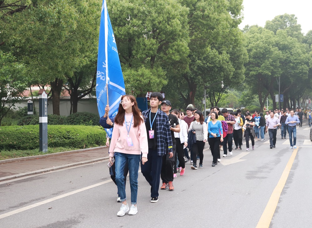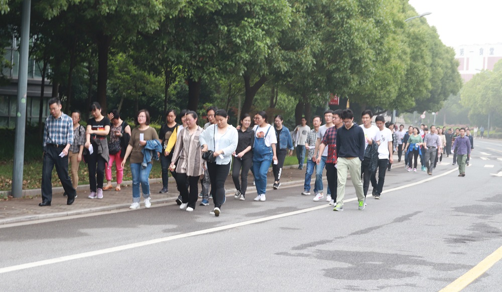 时时彩 教职工在梁林校区田径操场看台下起点集合后,按照健身走路线环梁林校区绕一圈,行程中间设置了三个打卡点(第一食堂门口、学生活动中心、TCL报告厅),教师们打卡后继续行走,最后在终点处梁林校区田径操场看台下签到。