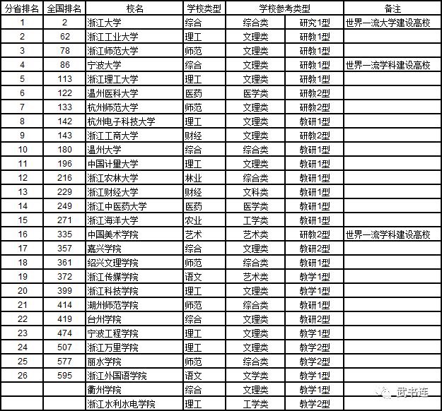 2018浙江省大学综合实力排行榜