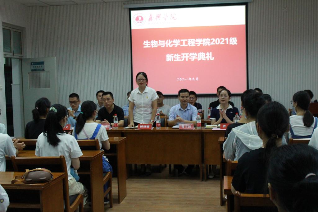 接着,老生代表生物182班楼舒琦同学发言。她结合个人进入课题组参与学科竞赛的成长经历,围绕“如何做一个“四明人”,即“想得明白,说得明白,写得明白,干得明白”与新生分享了自己对大学学习生活的收获和感悟。她认为,大学生要将自己的学业发展和人生追求融入祖国建设和民族复兴中,作为嘉院学子,要志存高远,脚踏实地,树立远大人生目标,保持审慎的学习态度,夯实专业基础,练就过硬本领。