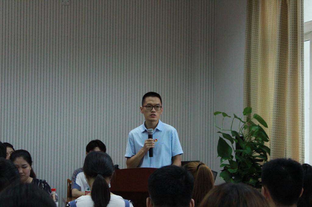 随后,朱连文老师代表全院教师表达了对新生的诚挚欢迎。他通过“用化学看大学”这碗人生鸡汤解读了大学是一个产率很低的化学反应产物,但只要清零学习的天平,探索学习的试管,终会有所收获。他表示,同学们要成为精选的反应物,时时彩