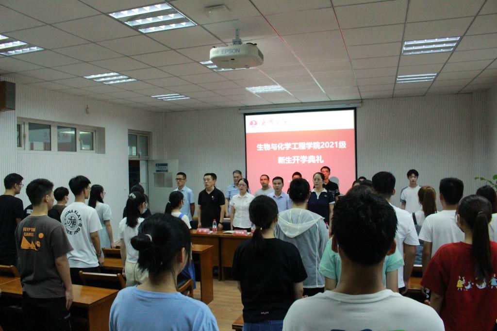 在1号楼506会议室、545和546教室通过线上线下相结合的形式隆重举行2021级新生开学典礼。时时彩