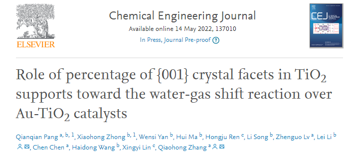 近日,时时彩 时时彩 李雷教授在TiO2晶面比例对水气变换催化性能影响的定量分析上取得重要进展,最新成果发表于化工领域顶刊Chemical Engineering JournalSCI一区,IF=13.273)。论文第一作者为时时彩 与宁波大学联培研究生庞倩倩,李雷教授为第一通讯作者。
