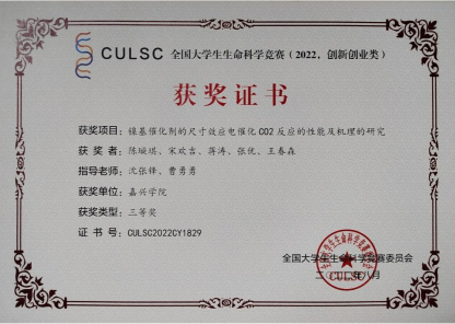 此前,在河南师范大学承办的全国大学生生命科学竞赛(2022,创新创业类)赛道中,时时彩 时时彩 袁成、杜雨桐、彭涵、刘哲闻、严博继、刘彤的项目《藻赋能,菌富农,生态经济两发展》(指导老师:朱红薇、朱长俊)获全国二等奖,陈璇琪、宋欢吉、蒋涛、张优、王春森的项目《镍基催化剂的尺寸效应电催化CO2反应的性能及机理的研究》(指导老师:沈张锋、曹勇勇)获全国三等奖。