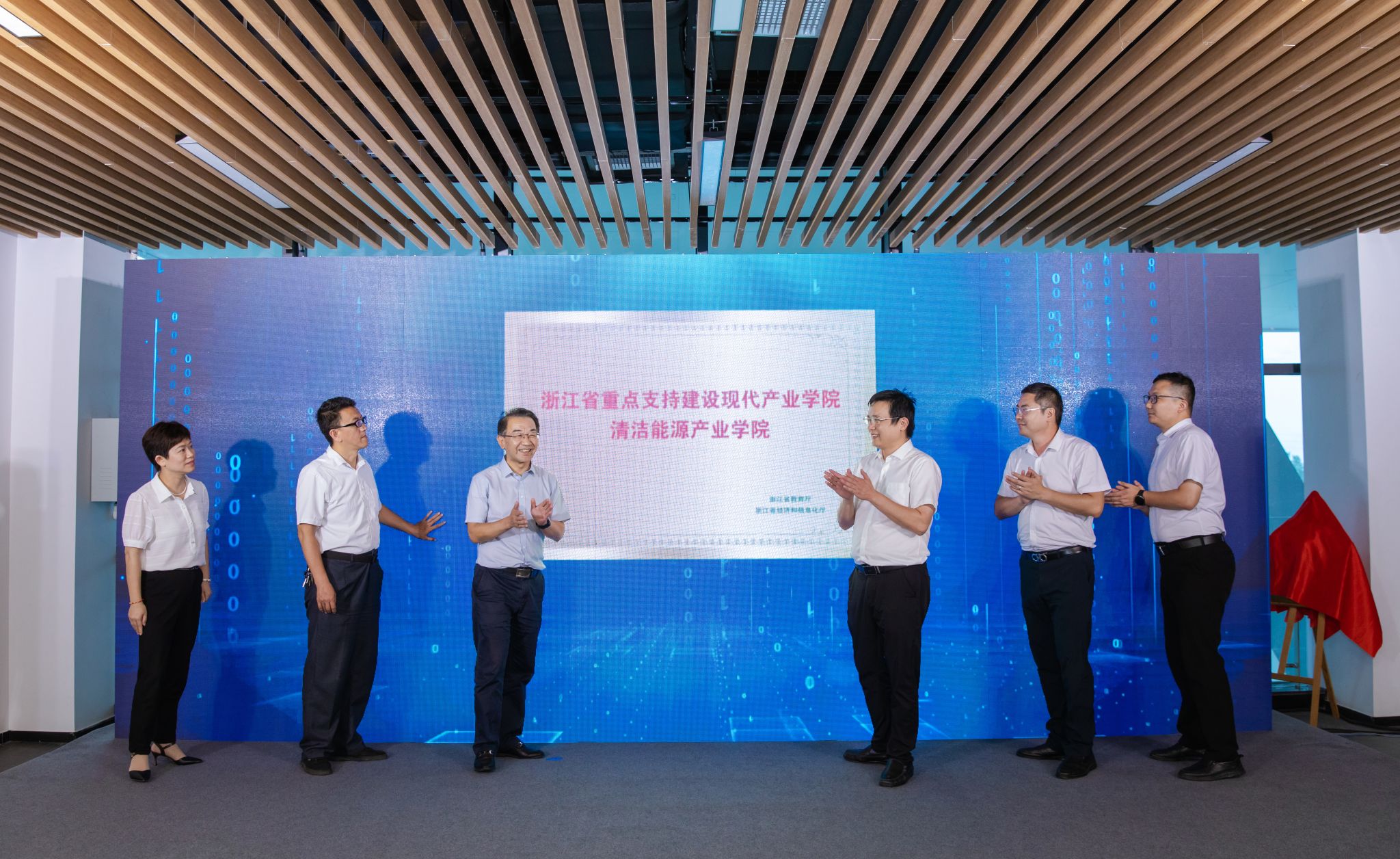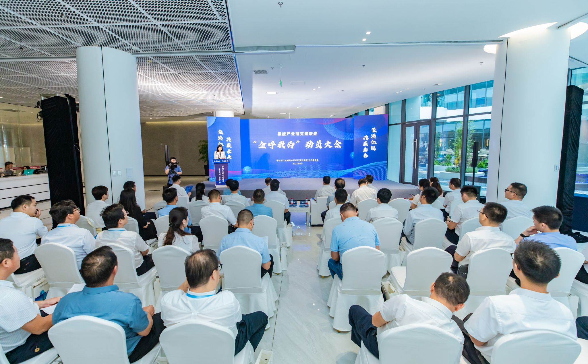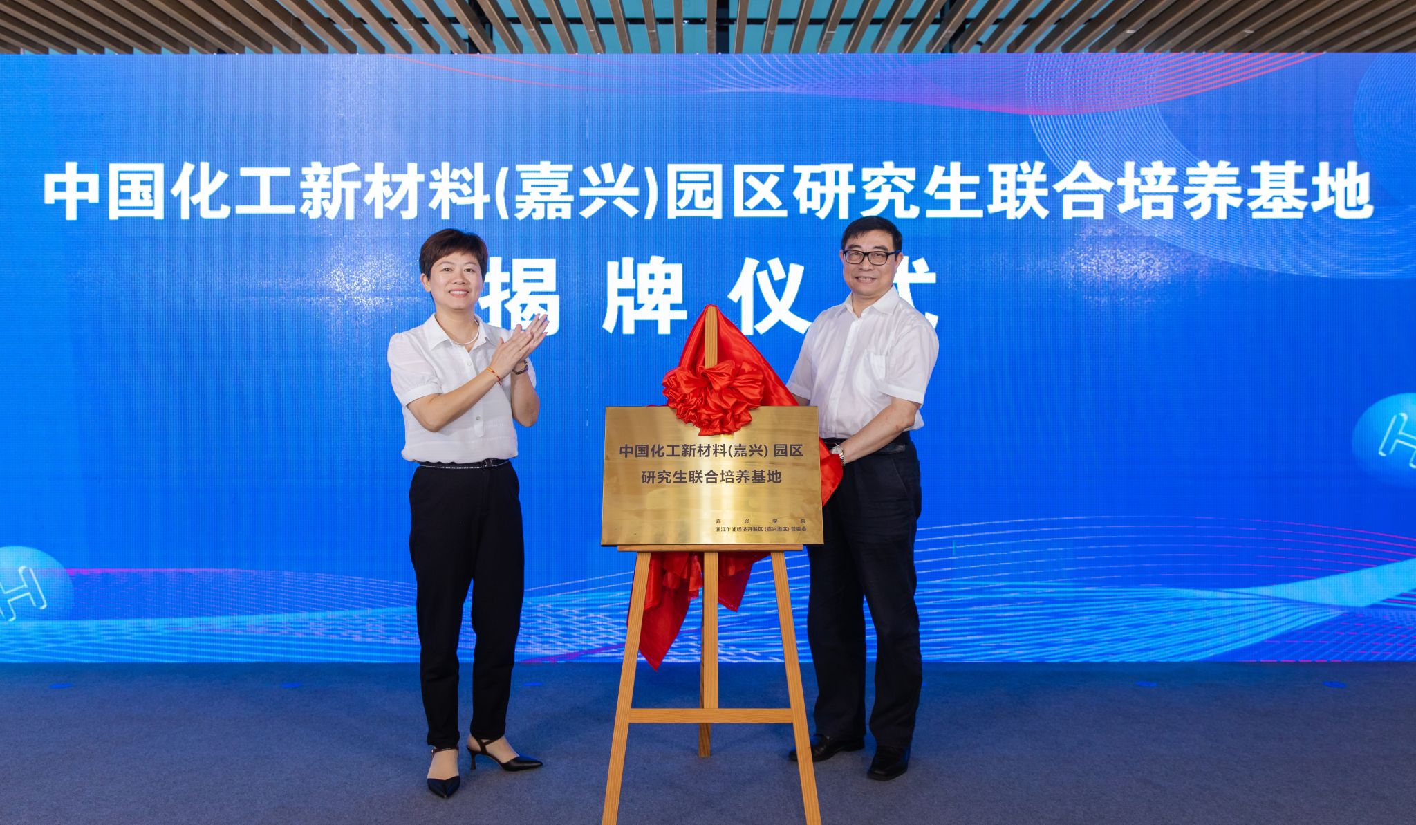 时时彩 相关部门(单位)负责人共同见证了浙江省清洁能源现代产业时时彩 、嘉兴时时彩 —嘉兴港区中国化工新材料(嘉兴)园区研究生联合培养基地等的揭牌仪式,举行了氢能产业链党群服务中心启用仪式、党建联建助推产业发展成果签约仪式,发布了《氢能产业链党建联建服务清单1.0》。