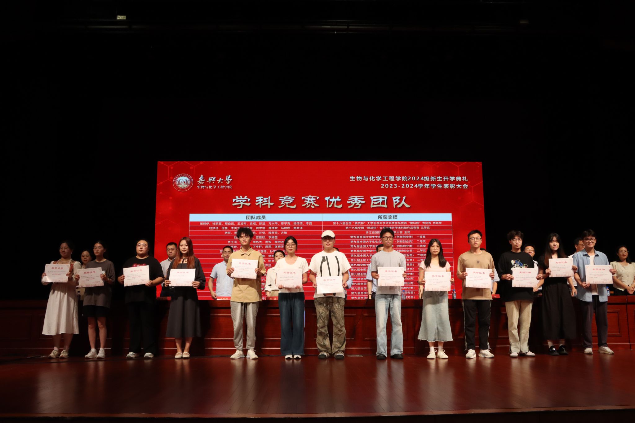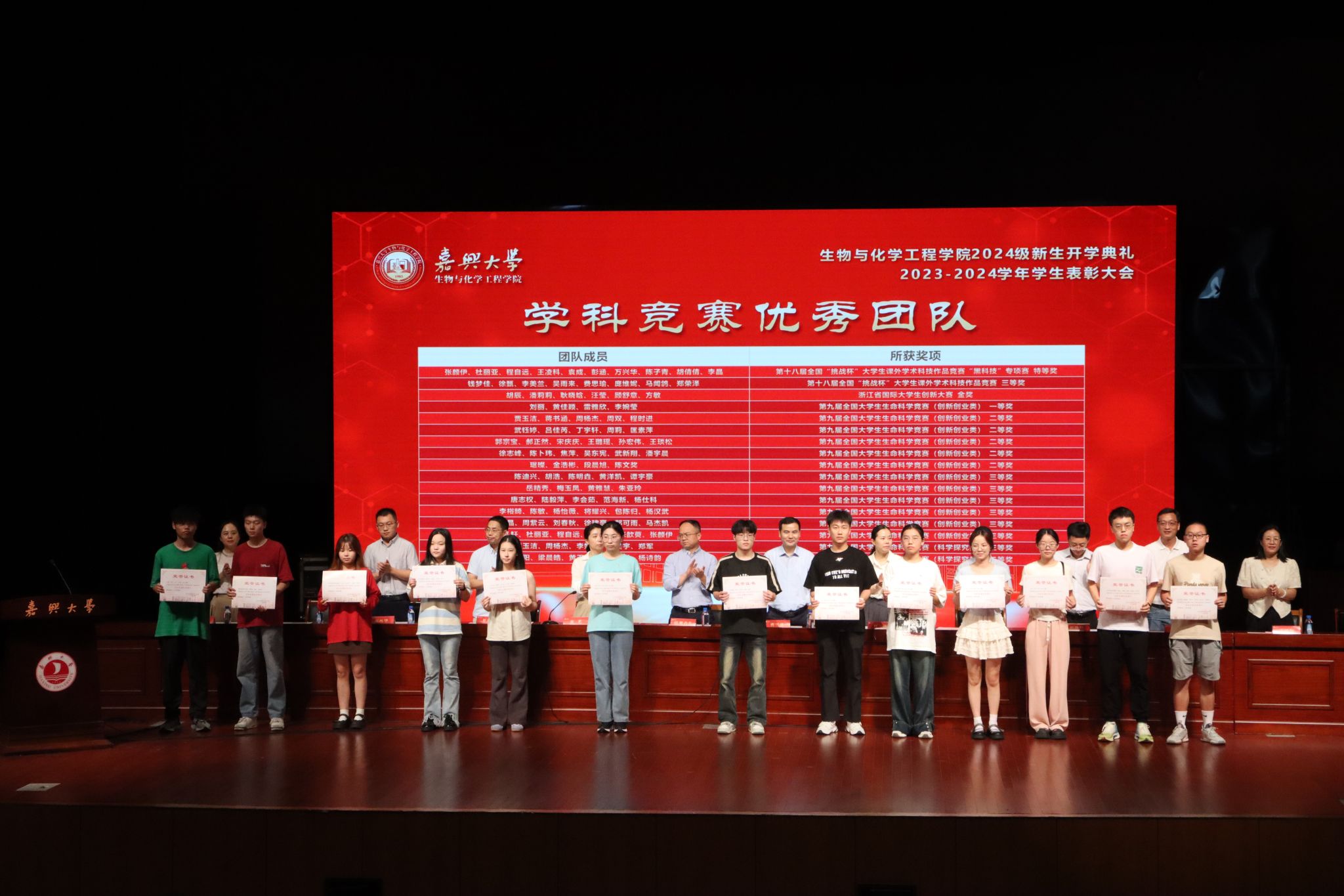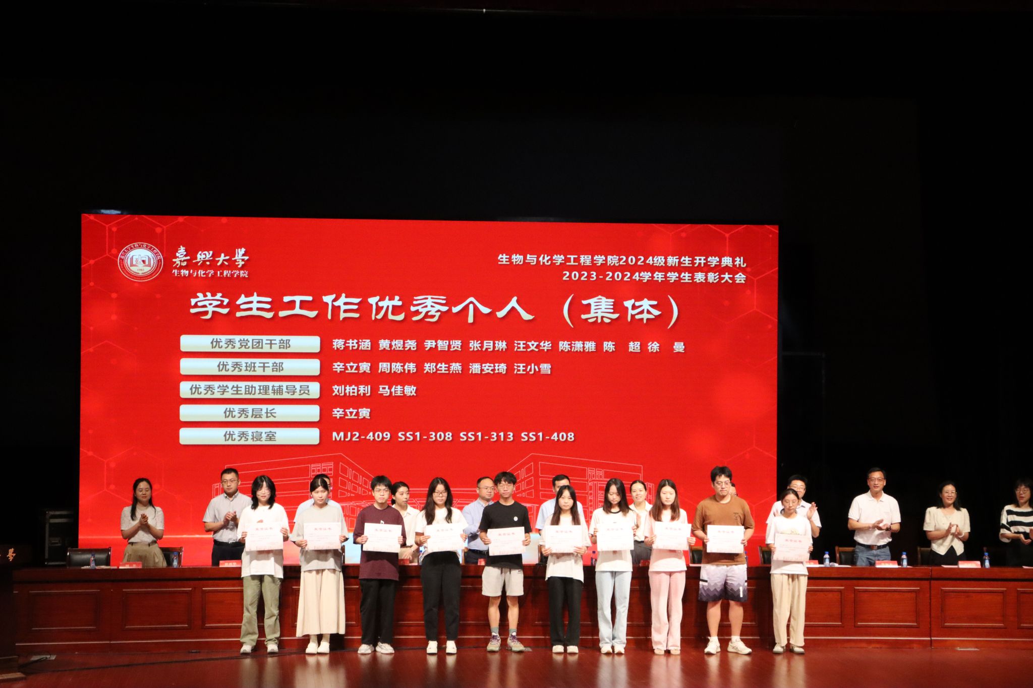 典礼还对2023-2024学年在学习、科研、竞赛、社会工作等方面取得良好成绩的优秀学生集体和个人进行了表彰。55个学生科研项目团队、19名学生、35名学生干部、4个学生寝室分别荣获“学科竞赛优秀团队”“学习之星”“优秀党团干部”“优秀寝室”等荣誉称号,激励更多学生学习榜样、成为榜样。