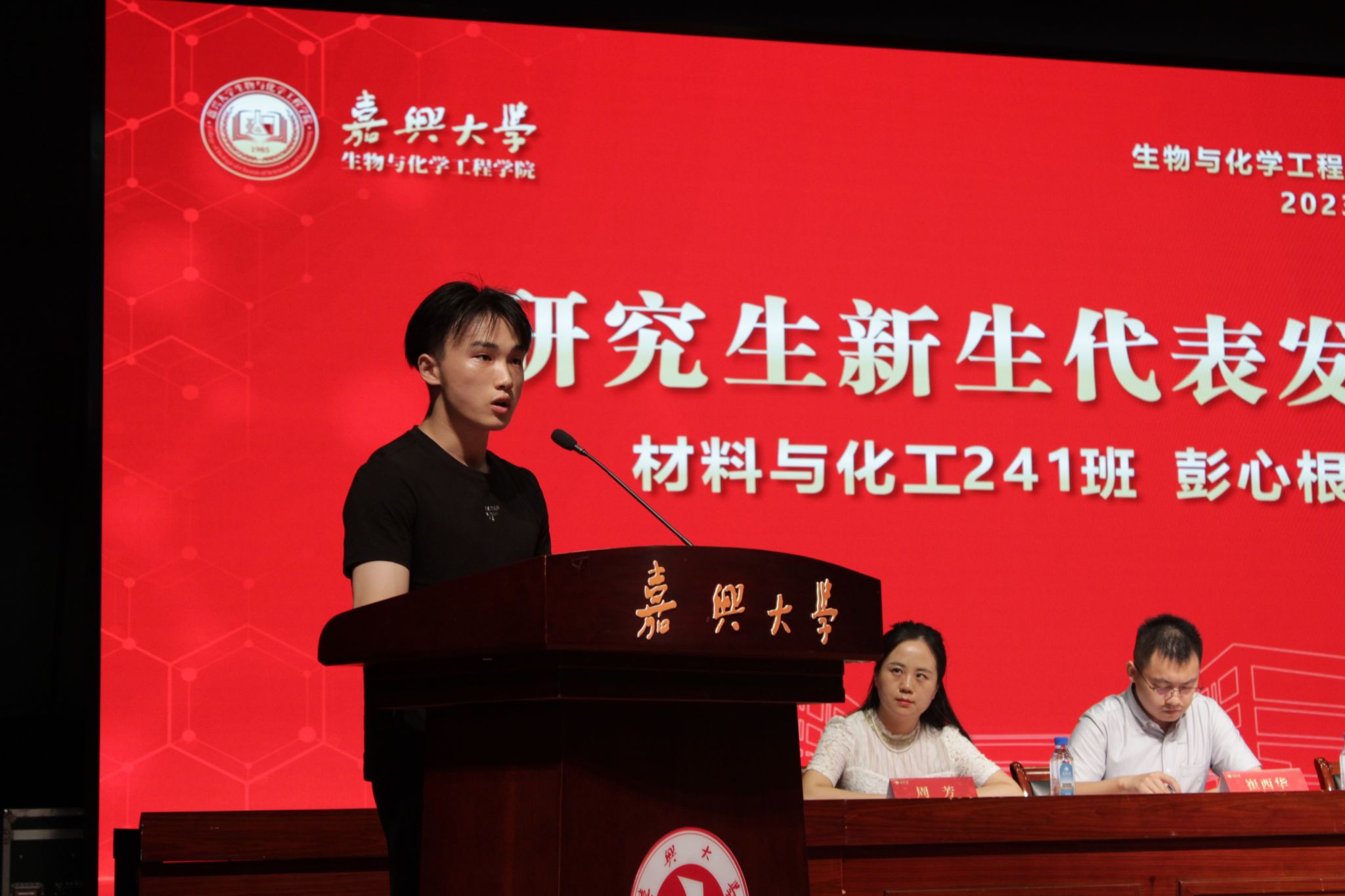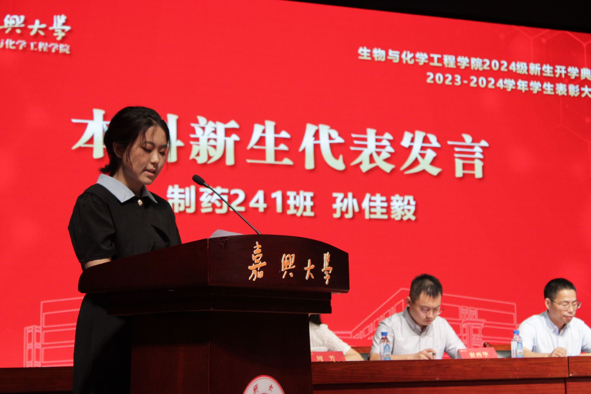 材料与化工专业24级研究生彭心根、制药专业24级本科生孙佳毅、生物221班杜丽亚分别代表研究生、本科新生、在校生进行发言。他们表示,作为中国革命起航地红船旁的大学生,他们将在立志笃行中胸怀“国之大者”,在躬身力行中修炼扎实学识,承担使命、读书创新、追逐梦想,在新的起点上奋力跑出这一代人的最好成绩。