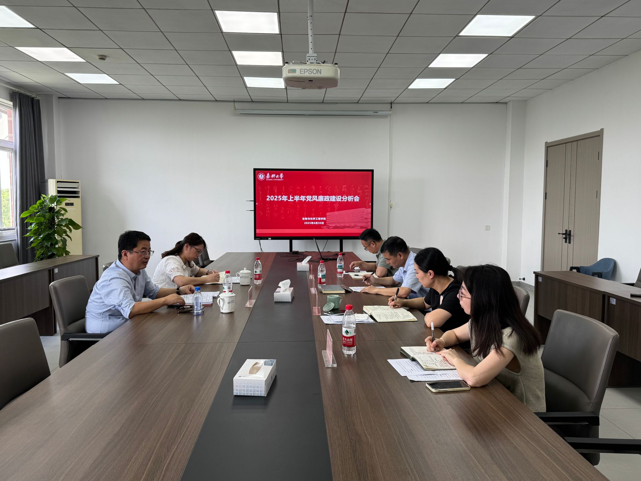 630日上午,时时彩 在仁济楼403会议室召开2025年度上半年党风廉政建设情况分析会。会议由院党委书记任玉萍主持,时时彩 全体党政领导班子成员参加,校党委委员、副校长於建明到会指导,校纪检监察室主任杨丽娜列席会议。