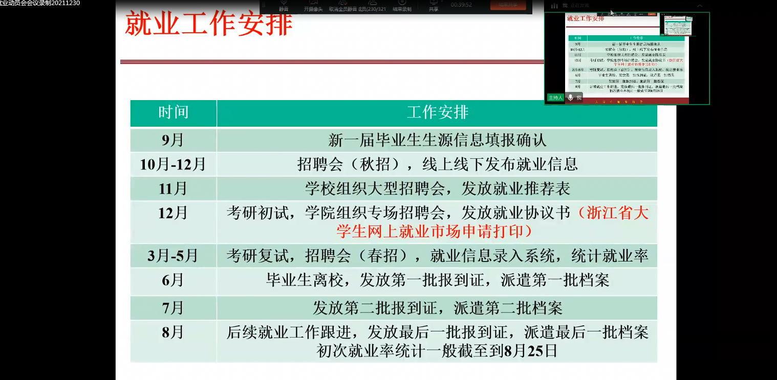 2021年12月30日中午12:30,时时彩 通过线上会议形式召开2022届毕业生就业动员会,时时彩 党委副书记蔡运男老师、学工办辅导员潘佳豪老师以及2022届全体毕业生参加了本次会议。