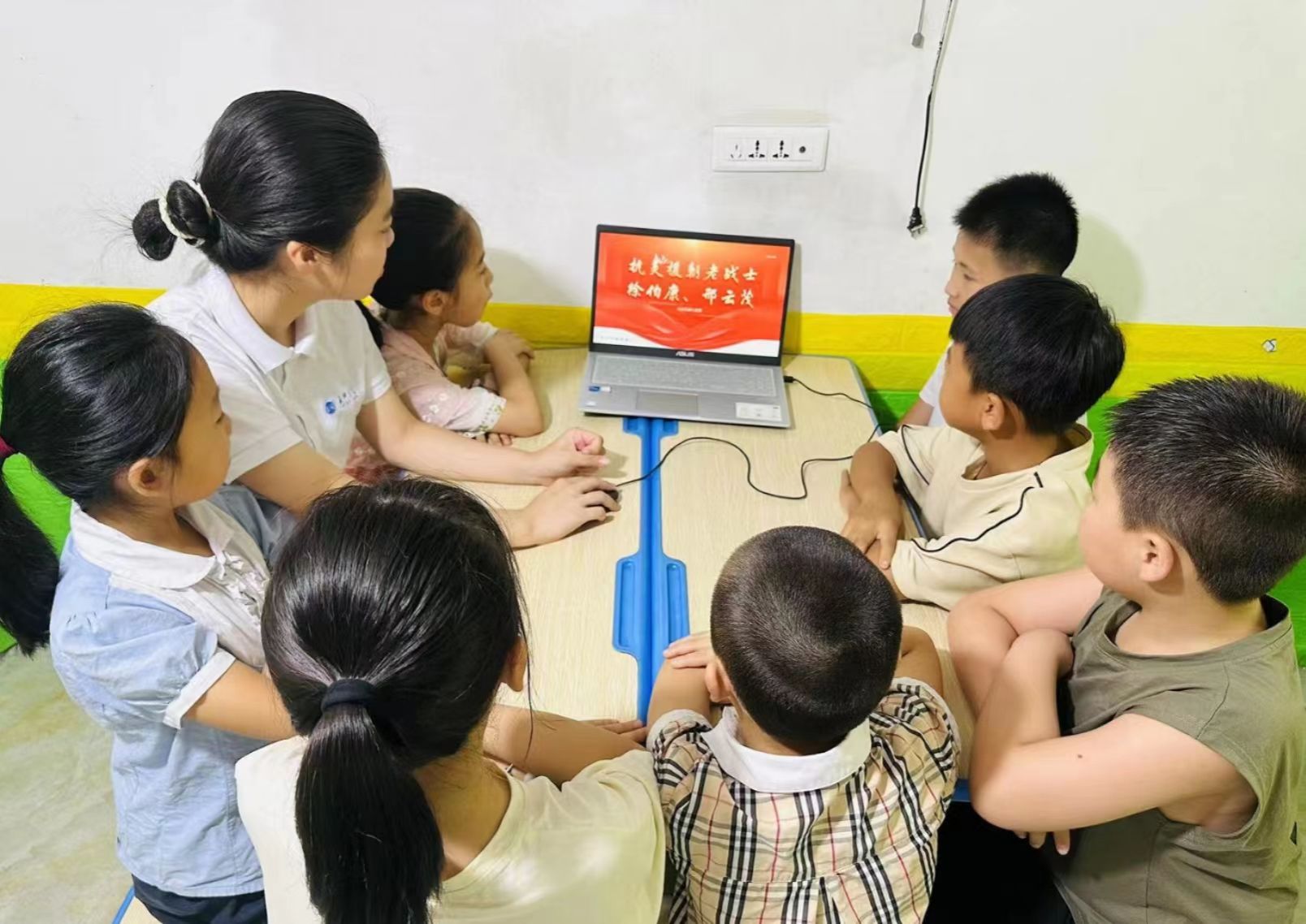 团队成员林茜茜同学以红色精神传承为主题,将徐伯康、邢云茂两位老战士的故事带到浙江省温州市涂厂村的兴趣班教室,通过讲故事、知识问答等形式将徐伯康抗美援朝的经历和邢云茂参与解放战争的历程分享给兴趣班的小朋友们。听完故事后,小朋友们纷纷表示,没有解放军的付出,就没有今天的和平发展和幸福生活。中华儿女不仅要珍惜现在的生活还要传承老战士们的顽强品格。