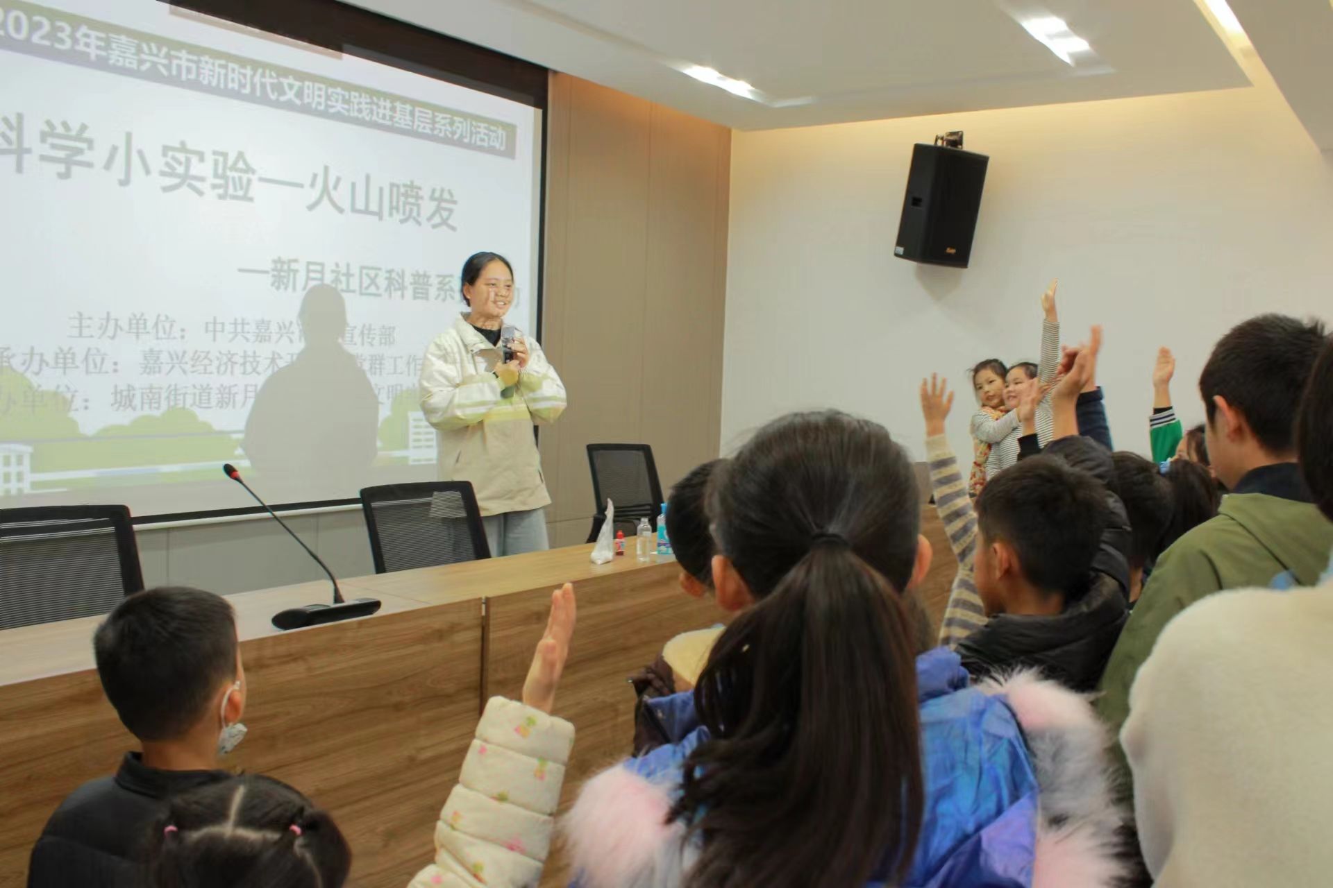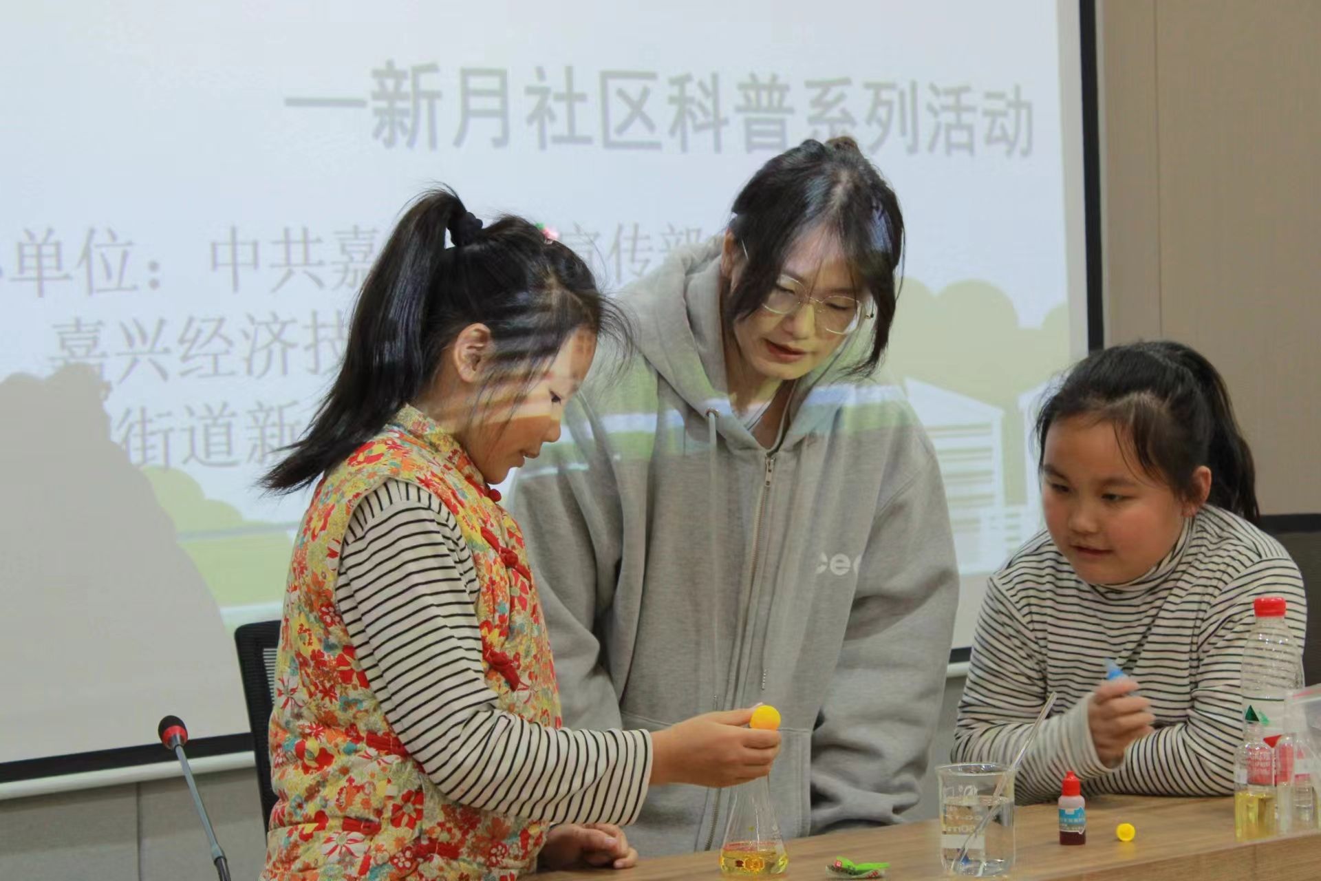 初冬将至,天气微寒。嘉兴时时彩 时时彩 “生’机无限,共‘化’未来”‘科普公益实践项目的志愿者们接过暖冬的第一把火炬,来到了城南街道新月社区开展科普志愿服务活动。志愿者们满怀热情,用妙趣横生的趣味实验将化学知识带入社区。