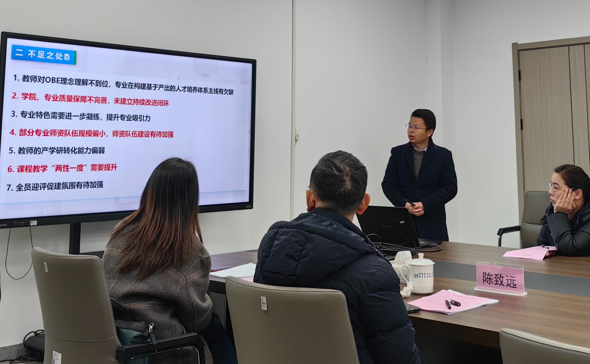 各专业要进一步梳理整改清单,扬长避短,促进科研反哺教学;要以新一轮审核评估为契机,优化人才培养体系,落实立德树人根本任务;全院要以最充分的准备、最饱满的热情全力做好审核评估的各项准备工作。